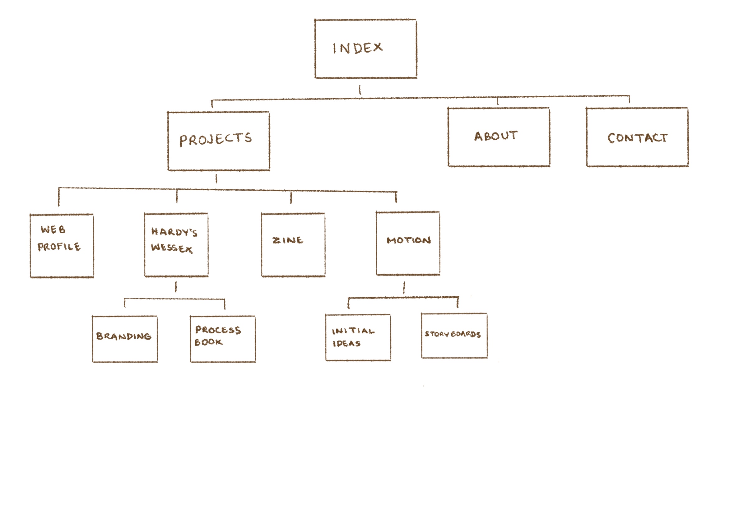 From this I got a better understanding of the importance of navigation on a website, and I knew that I wanted to keep mine minimal and clear to tell the story my projects and myself. I visualised this through sketching my wire frame and planning the content to fill the website with.
